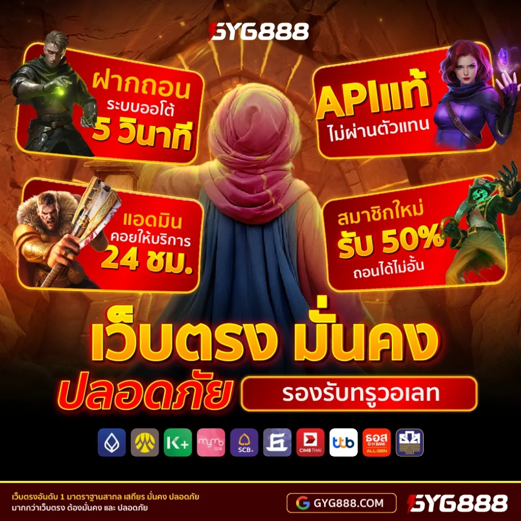 GYG888 คือแพลตฟอร์มสล็อตเว็บตรงที่เชื่อมต่อผู้ให้บริการเกมด้วยสัญญา API แท้ ทุกค่าย ไม่ดัดแปลงผลลัพธ์หลังบ้าน ระบบธุรกรรมเป็นอัตโนมัติเต็มรูปแบบ ฝาก–ถอนเสร็จในไม่กี่วินาที รองรับทั้งธนาคารไทยและ TrueMoney Wallet ใช้งานได้เสถียรบนมือถือทุกยี่ห้อ พร้อมทีมช่วยเหลือ 24 ชม.